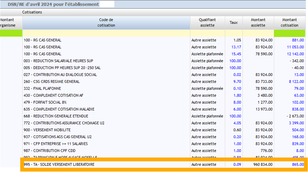 que l’assiette et le montant du CTP 995 – TA – SOLDE VERSEMENT LIBERATOIRE