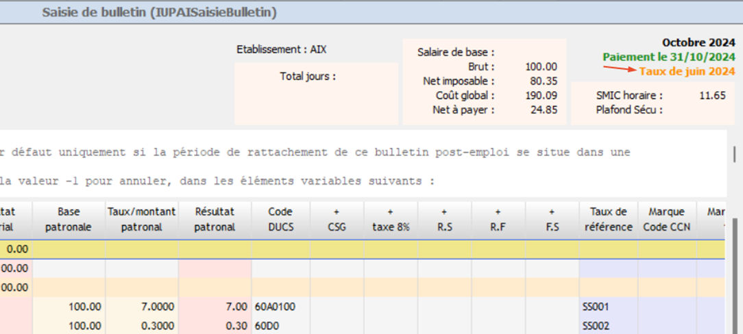 Si le CRM n’est plus valide, alors c’est un taux non personnalisé qui s’applique sur le bulletin post-emploi. Dans tous les cas, il n’est pas possible de modifier le taux PAS du bulletin.